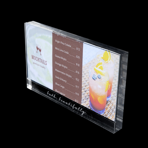 Clear Lucite Horizontal Side Loading Sign Holder Thick Acrylic Hotel Menu Card Display Holder